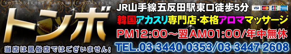 JR山手線五反田駅東口徒歩5分韓国アカスリ専門店・本格アロママッサージ「トンボ」COPYRIGHT 2013(C)